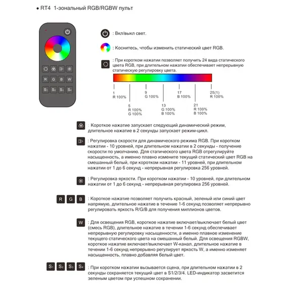 Пульт управления контроллером WHITE, 1 зона (RT4)