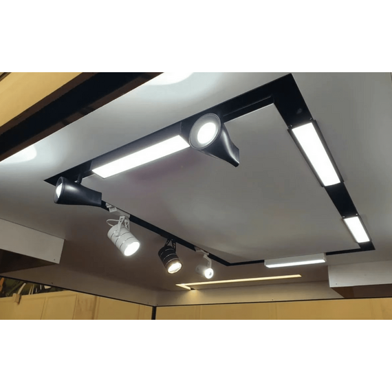 - Чёрный профиль предназначен для размещения в нём дополнительного оборудования, такого как трек-системы, светильники L31/L61 или точечные.