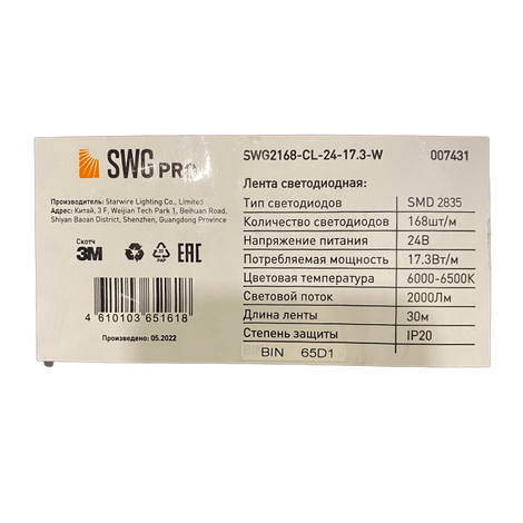Светодиодная лента SWG PRO 17,3w/168 точек/6000-6500К (24v)